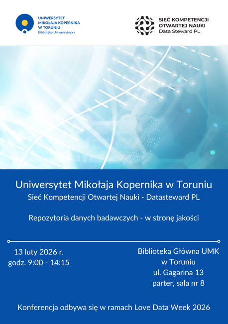 Seminarium – współorganizowane przez Bibliotekę Uniwersytetu Mikołaja Kopernika w Toruniu oraz Sieć Kompetencji Otwartej Nauki – Data Steward PL – jest skierowane do członków naszej społeczności.